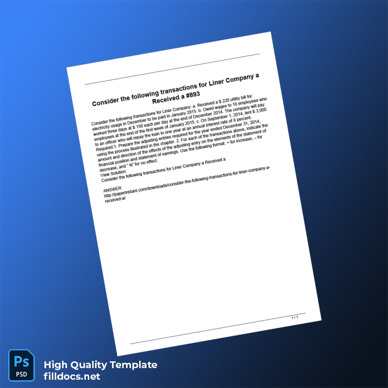 Designed for professionals who need a reliable and customizable utility bill template, the Liner Company Editable Adjusting Entries Template in Word and PDF formats simplifies the process of creating authentic-looking proof of address documents. Whether you require a water bill template word or an editable utility bill template PDF, this versatile resource ensures seamless editing and quick results.