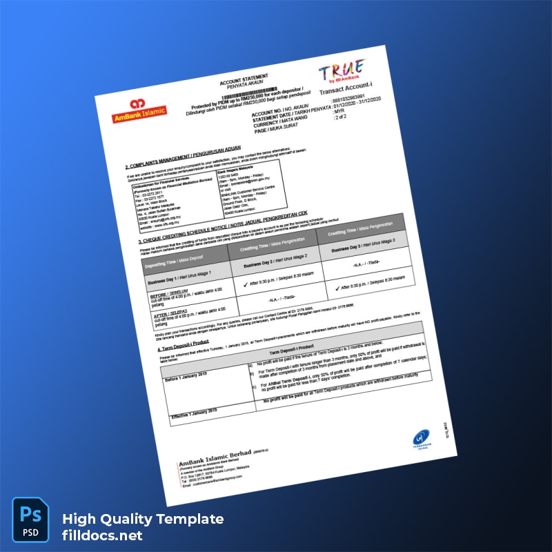 Elevate your professional documentation with our Malaysia AmBank E-Statement Template, available in both Word and PDF formats. This meticulously crafted template is designed for individuals needing a quick, reliable, and customizable bank statement solution.