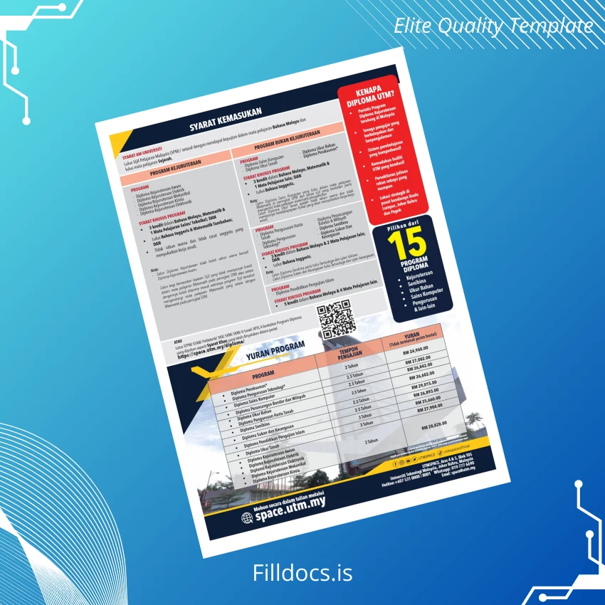 With features like instant file download after payment confirmation and user-friendly editing, this template addresses common challenges of document replacement or creation without the need for advanced graphic design skills. Enhance your professional presentation today with this high-quality Malaysia Universiti Teknologi Malaysia diploma template designed to meet diverse academic and personal documentation needs.