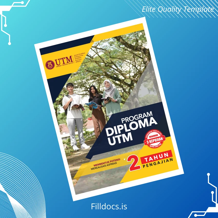 Malaysia Universiti Teknologi Malaysia Diploma Template – Word & PDF High Resolution Print-Ready 2 Page
