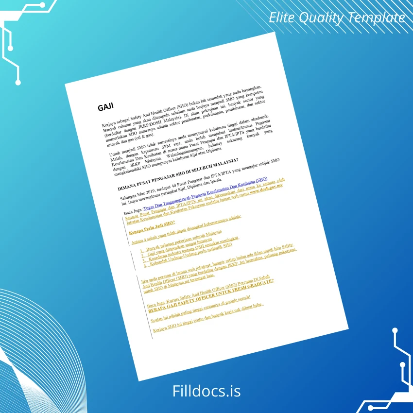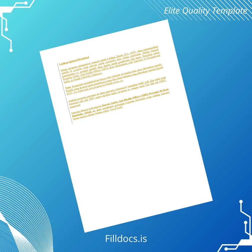 Discover the Malaysia University of Safety and Health Diploma in Occupational Safety and Health Template – Word/PDF, a professionally designed, editable diploma form tailored for seamless customization and instant use. This fillable template offers a user-friendly solution for professionals needing a replacement diploma or a novelty diploma design with a clean and authentic appearance. Whether you’re updating records or preparing official documents, this digital diploma download simplifies the process with its versatile Word and PDF formats.