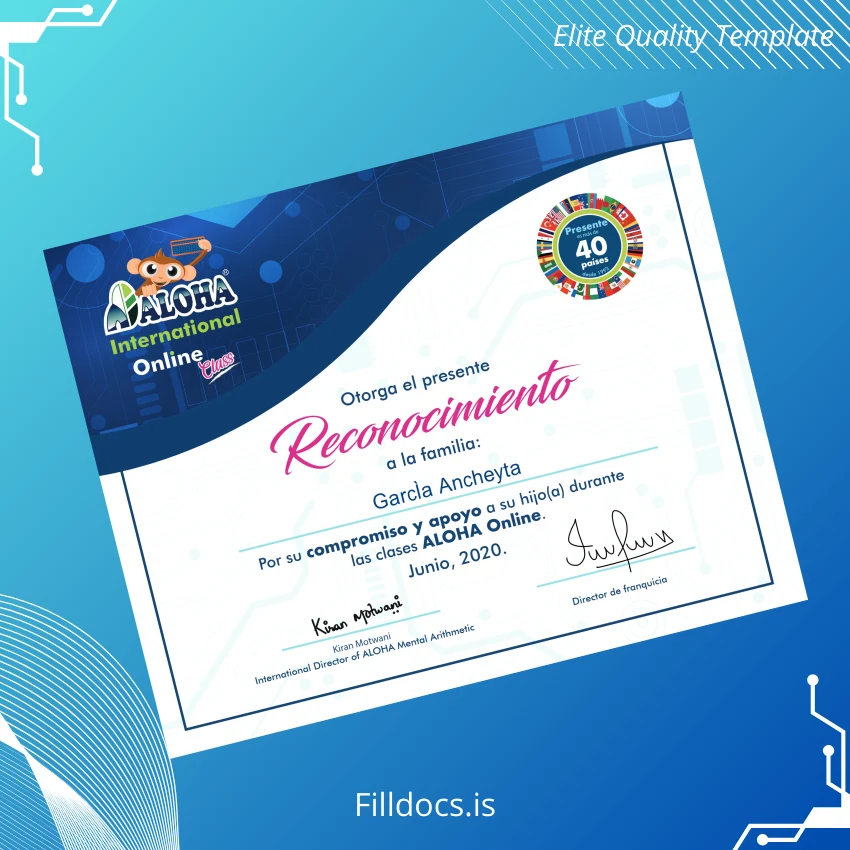 Mexico ALOHA International Recognition Certificate Template – High Resolution Word & PDF
