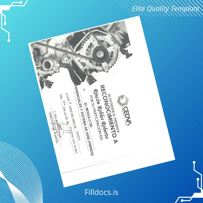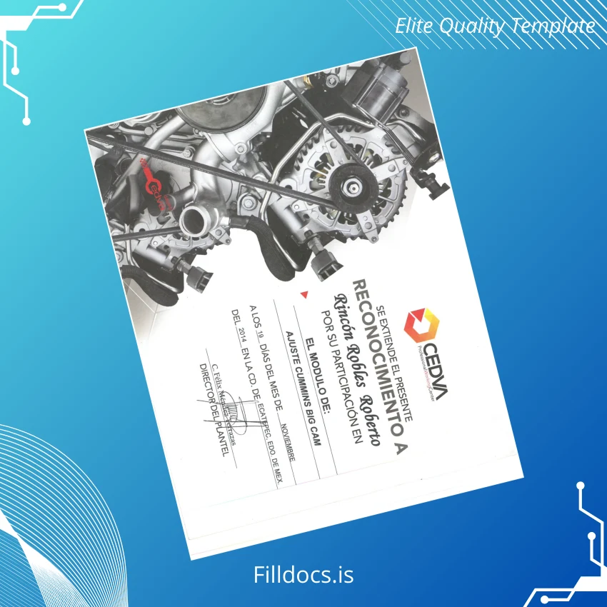 The Mexico CEDVA Motor Diploma Template – Word/PDF is a high-quality, fillable diploma design made for professionals who need a quick and customizable replacement diploma. Perfect for those who have misplaced or require an updated version, this template offers a seamless solution with editable fields allowing users to effortlessly enter their own information, preserving authenticity and professionalism.