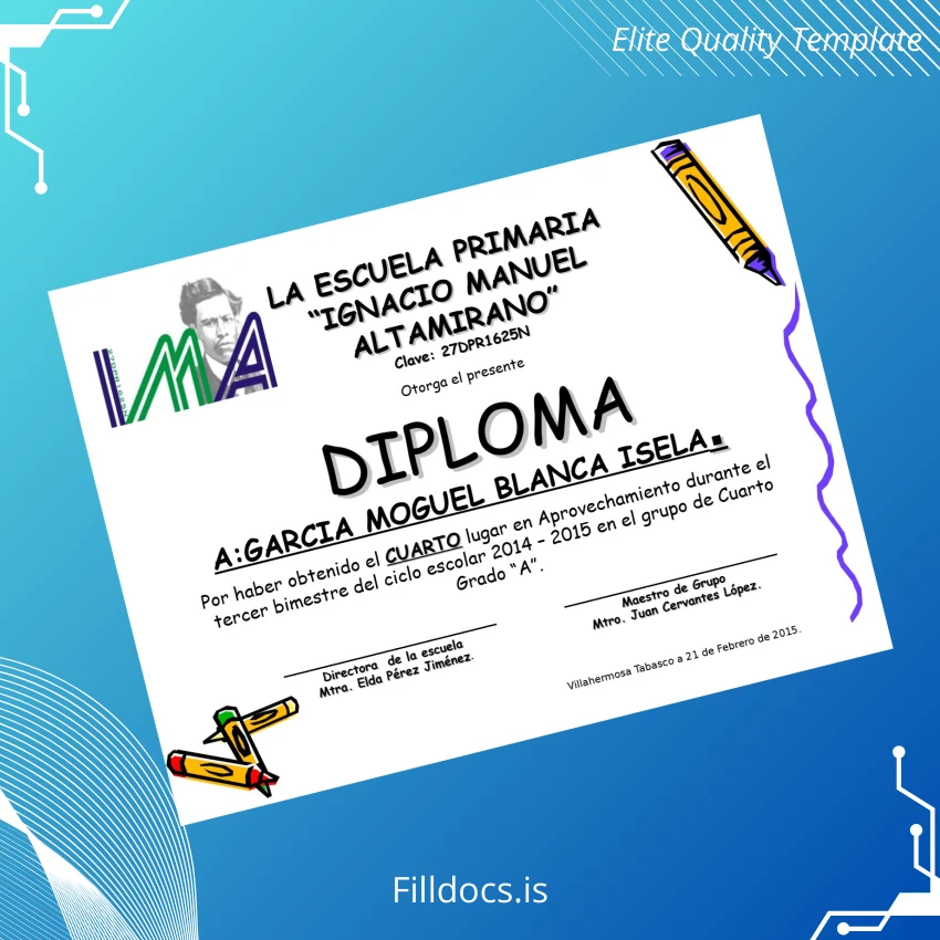 The Mexico Ignacio Manuel Altamirano Primary School Diploma Template – Word/PDF is a professional, customizable document designed to replicate authentic diploma certificates with precision. Ideal for educators or administrators needing a polished replacement or novelty diploma, this template allows effortless personalization of essential details including names, dates, and signatories. With a focus on fidelity to official designs, it serves as a reliable solution for both educational institutions and individuals seeking blank diploma forms in editable formats.
