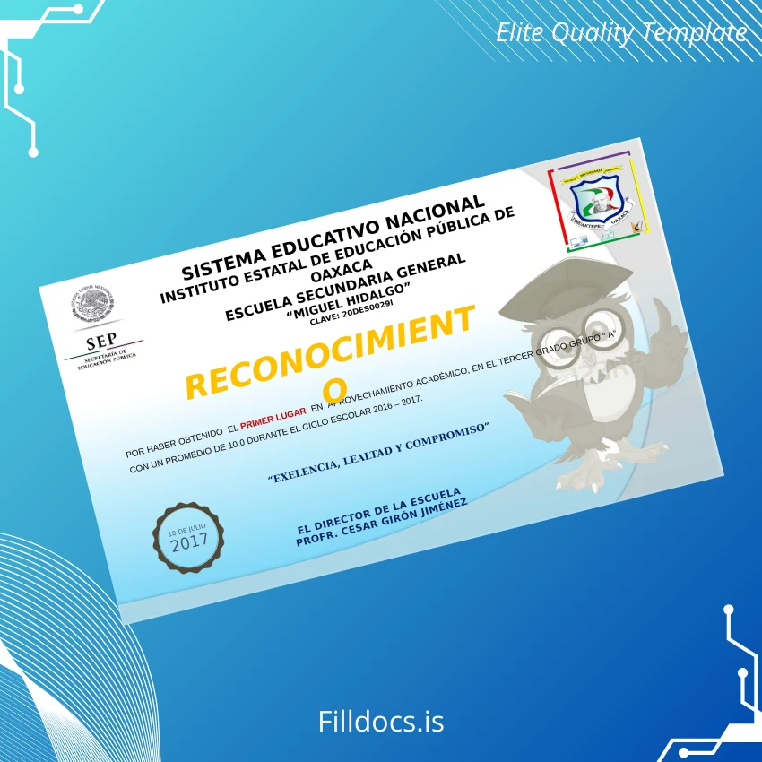 This Mexico Instituto Estatal de Educación Pública de Oaxaca Recognition Certificate Template – Word/PDF offers a professionally designed, fully editable solution for creating authentic recognition certificates. Perfect for educational institutions, event organizers, and administrative professionals requiring a quick and reliable diploma replacement or official document reproduction.