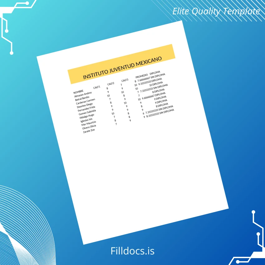 This template is a fully editable diploma certificate tailored to represent the Mexico Instituto Juventud Mexicano High School. It offers an instant digital diploma download that can be personalized with your details and printed, providing a professional-looking document that is ideal for replacement purposes or novelty display.