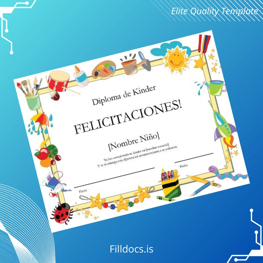 The Mexico Kinder Diploma Template – Word/PDF is a customizable and fillable digital diploma designed for educators, administrators, and designers who require an efficient way to create professional kindergarten diplomas. This template streamlines the certification process by providing an editable and user-friendly format compatible with both Microsoft Word and PDF editors.