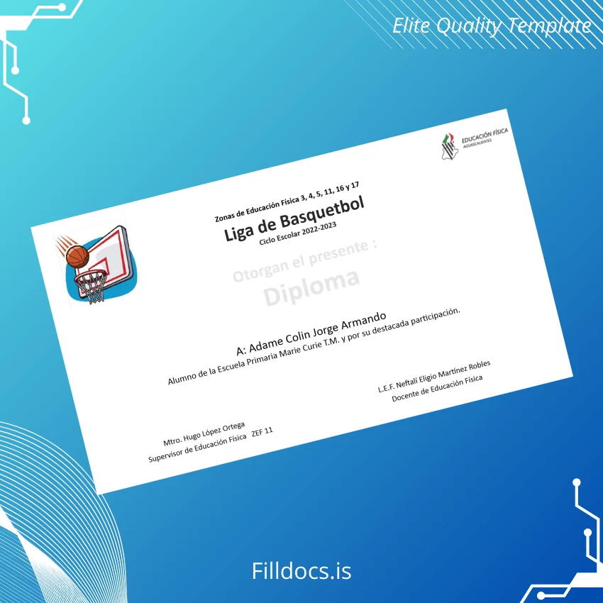 The Mexico Marie Curie Primary School Diploma Template – Word/PDF is a professionally designed, fillable diploma certificate ideal for educational institutions seeking a customizable and seamless digital solution. This template caters to administrators and educators who require a prompt, editable document for issuing diplomas or replacement certificates in both Word and PDF formats.