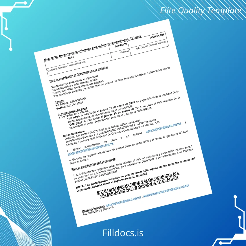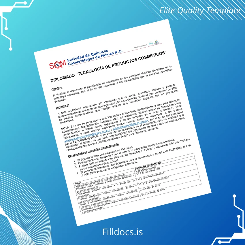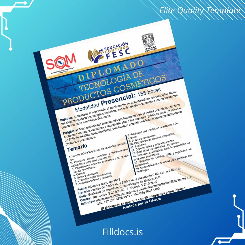 Discover the Mexico National Autonomous University Diploma in Cosmetic Technology Template – Word/PDF, a high-quality, digital diploma designed for professionals seeking a customizable and fillable document solution. This template offers an exceptional balance of professional design and practical functionality, allowing you to efficiently create authentic-looking diplomas tailored to specific academic and professional achievements.