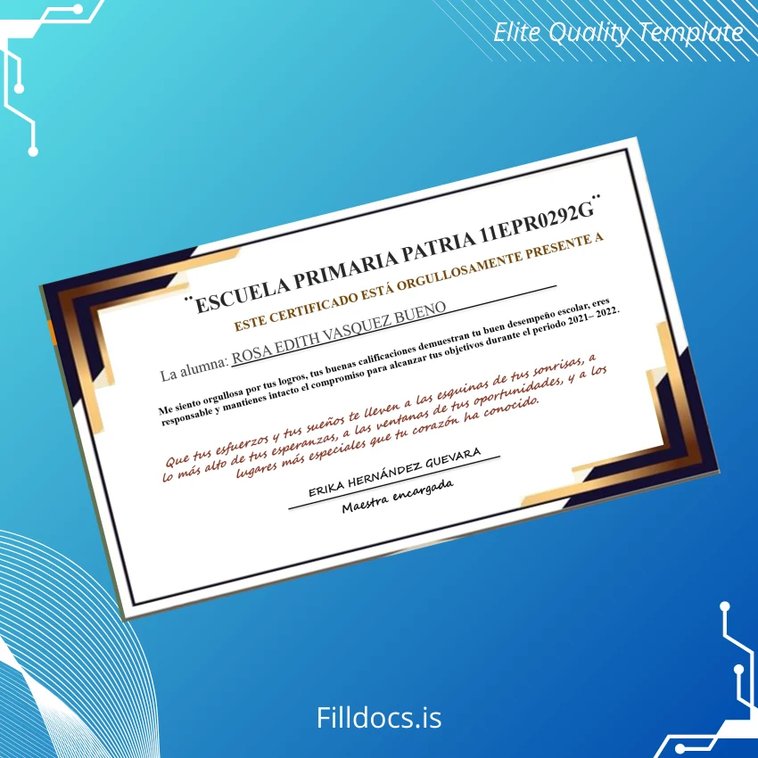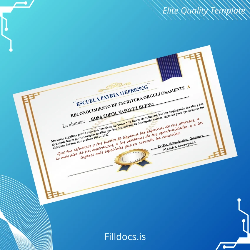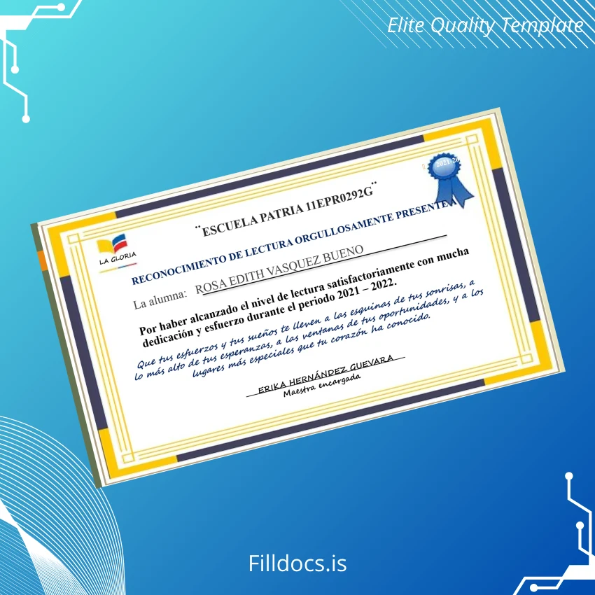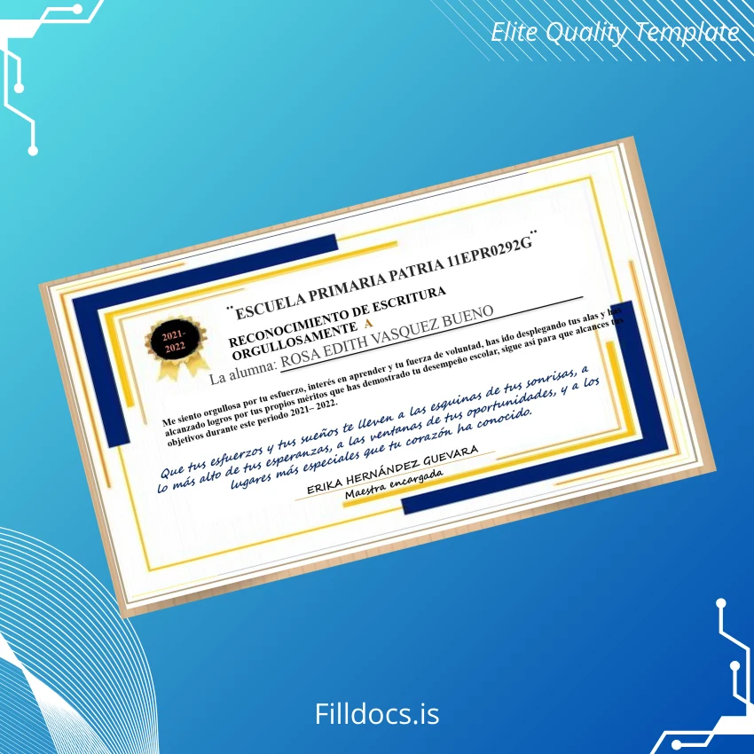 The Peru Escuela Patria Certificate Template is fully compatible with Word and PDF formats, making it accessible to users with varying technical skills. Editing is straightforward, allowing users to modify text fields directly without compromising the layout or design integrity. For those needing additional options, the template supports incorporation of institution logos and signature images. To explore more options within our portfolio, visit the replacement diploma template category.