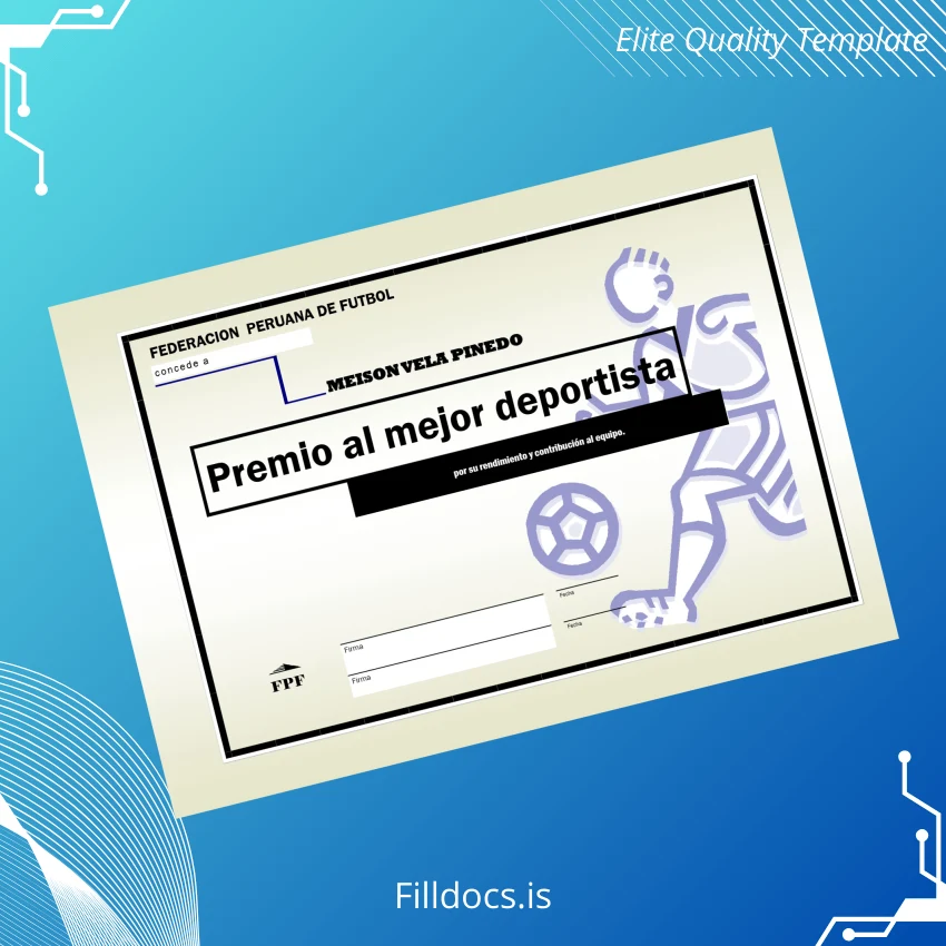 The Peru Federation of Football Best Athlete Award Diploma Template – Word/PDF is a professionally designed, fillable document ideal for recognizing outstanding athletes with a customizable, high-quality diploma. Perfect for sports organizations, schools, and associations seeking an official-looking award certificate, this template offers advanced editing capabilities in Word and PDF formats.