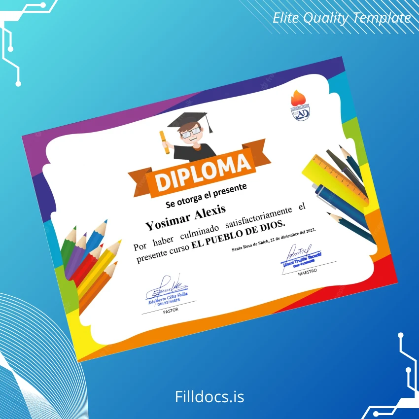 The Peru Santa Rosa de Shick Diploma Template – Word/PDF is a versatile, fillable certificate designed for professionals who need a high-quality replacement or customizable diploma. Crafted for seamless editing, this digital diploma download allows users to maintain a polished and authentic look while easily updating essential details.