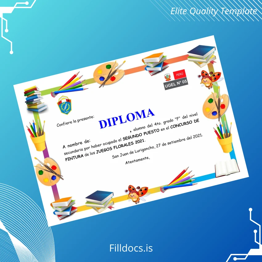 The Peru UGEL N° 05 Honor Diploma Template – Word/PDF is a professionally designed, fillable certificate template tailored for educational and official recognition purposes. This template offers a seamless solution for institutions, educators, and administrative professionals seeking a customizable and readily accessible diploma format that meets high-quality standards and printing needs.