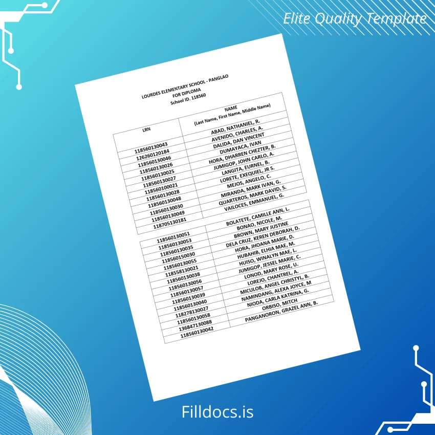 This Philippines Lourdes Elementary School High School Diploma Template – Word/PDF offers a professional, fully customizable solution for creating authentic-looking diploma certificates. Designed specifically for educators, institutions, and professionals needing a high-quality, editable diploma, this digital product combines usability with elegance. Whether for replacement purposes or novelty presentations, it perfectly balances traditional academic aesthetics with digital convenience.