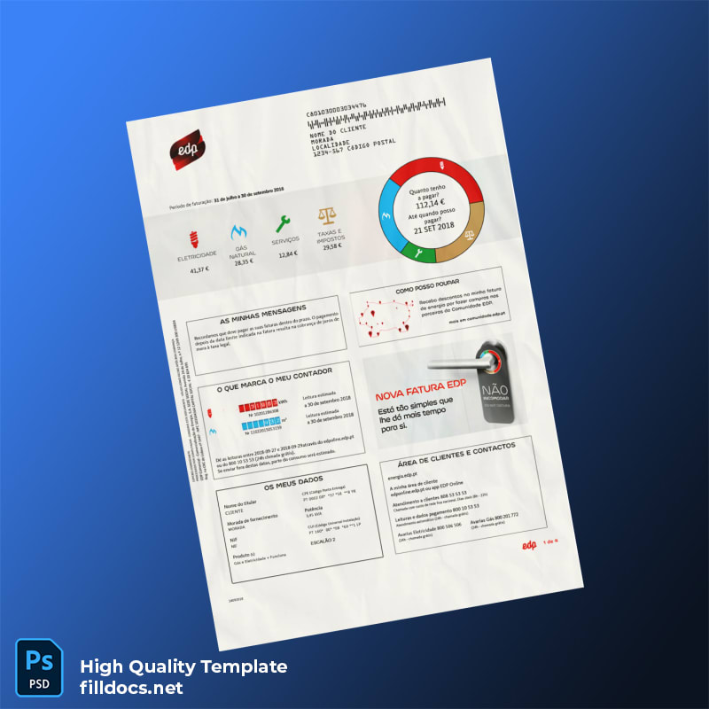 Portugal EDP Editable Utility Bill Template in Word and PDF Formats