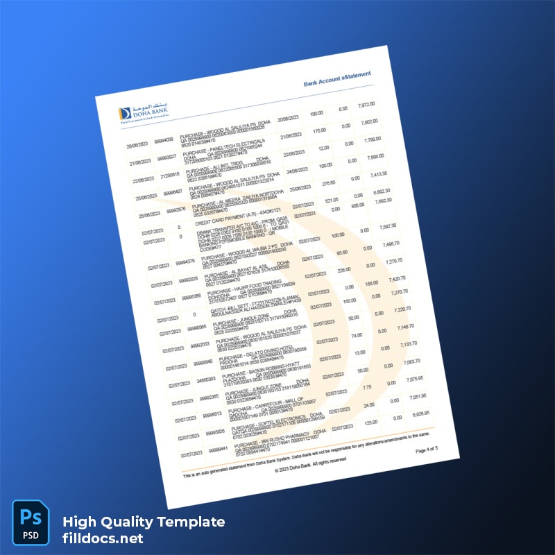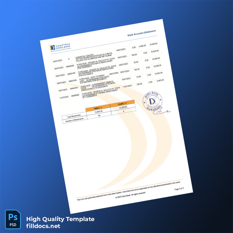 Be the first to review “Qatar Doha Bank Statement Template in Word and PDF formats 3 page”