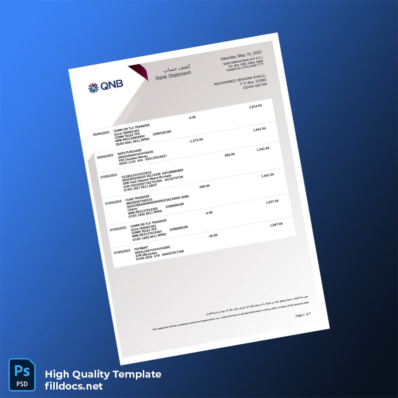 Qatar Qatar National Bank Account Statement Template in Word and PDF formats 7 page