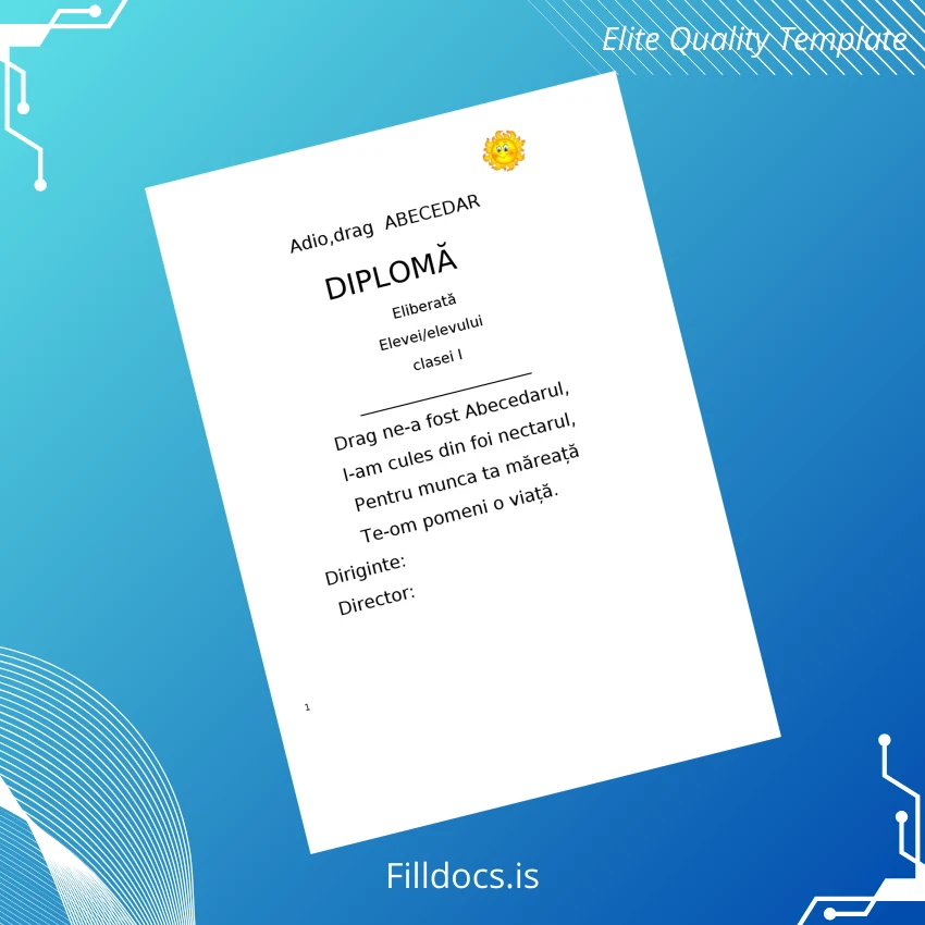 Discover the Romania Abecedar Class I Diploma Template – Word/PDF, a professional and customizable certificate designed specifically for primary education achievements. This ready-made fillable diploma form offers seamless editing capabilities in both Word and PDF formats, making it an ideal solution for educators, school administrators, and institutions requiring efficient diploma replacement or issuance.