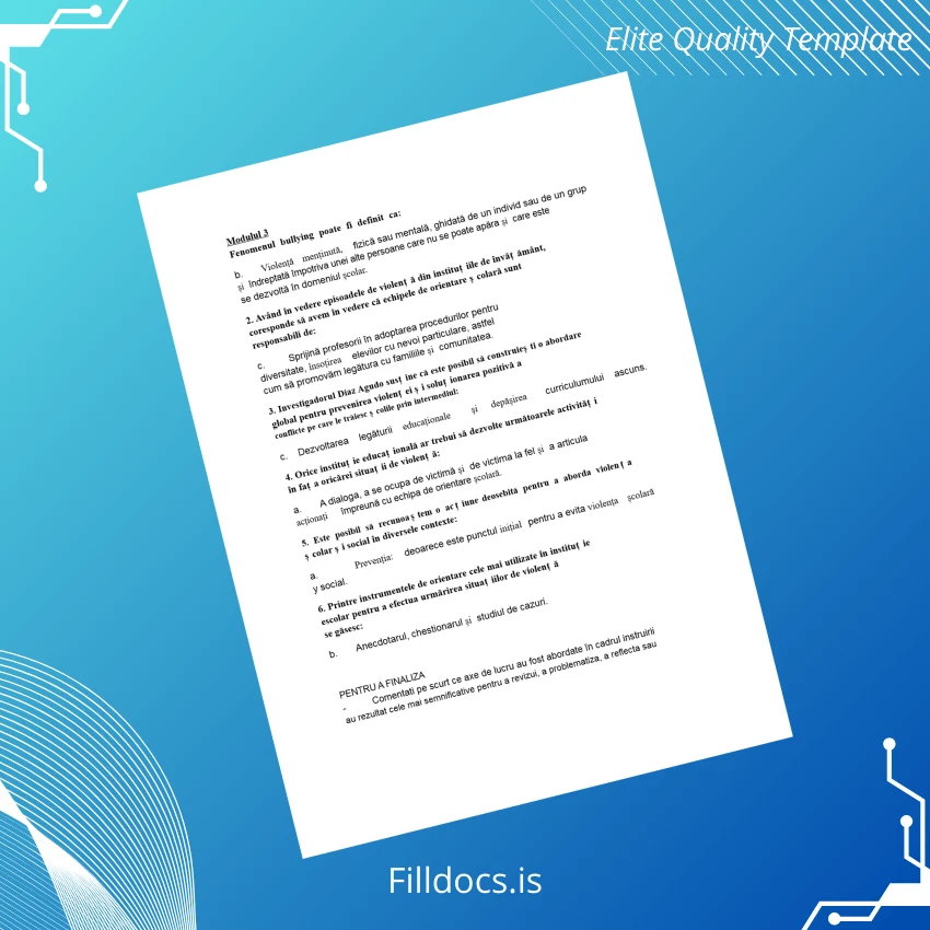 This Romania Diploma in Community Research Strategies for Addressing Bullying Template – Word/PDF is a professionally designed, fillable certificate template tailored for individuals and organizations looking to create official diplomas efficiently. It merges elegant design with practical usability, ensuring users can quickly produce customized diplomas that reflect academic or professional achievements in the field of community research and bullying prevention.