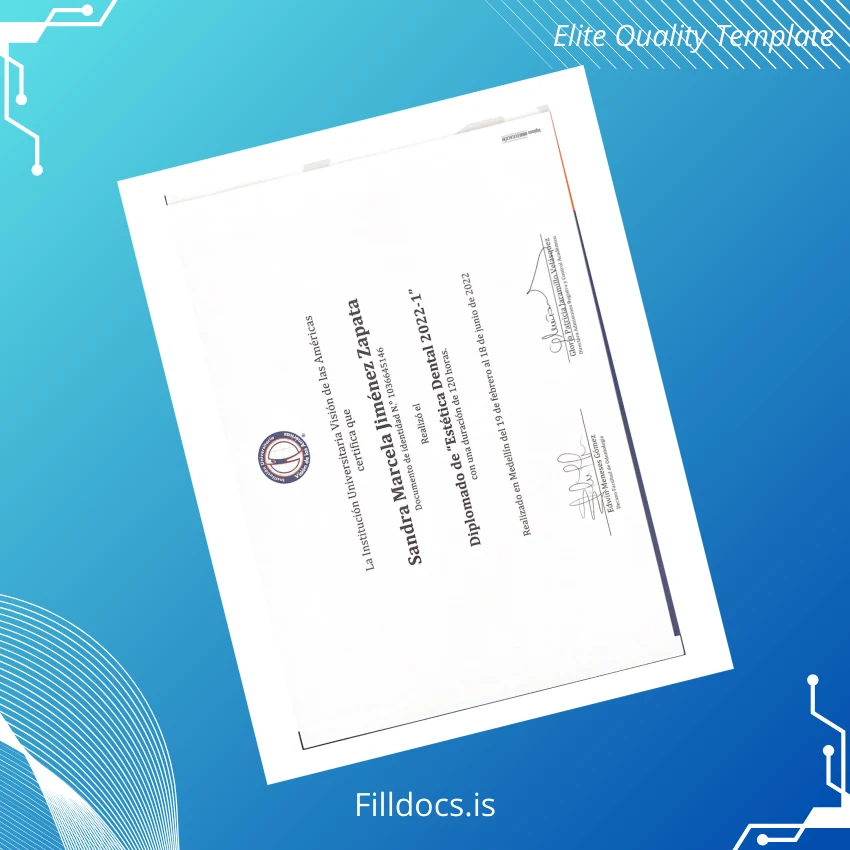 The Spain Autrán Dental Academy Diploma in Dental Aesthetics Certificate Template – Word/PDF is a professionally designed, fillable diploma form created for dental professionals seeking a customizable and elegant certificate format. This digital diploma download offers a high-quality blank diploma form suited for replacement needs or novel certificate presentations that demand both clarity and a refined aesthetic. Ideal for dental academies and graduates, this template combines classic charm with modern usability.