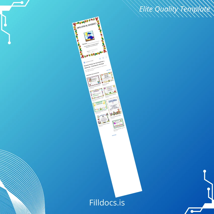 The Spain Diploma Al Esfuerzo Template is compatible with Microsoft Word and PDF editors, enabling seamless text and minor layout edits. You can directly input your own information into predefined, fillable fields without needing advanced design software. For detailed customization or font adjustments, easy-to-use tools in Word and most PDF editors ensure your diploma looks polished and authentic. Visit our replacement diploma template category to explore similar professional-grade templates.