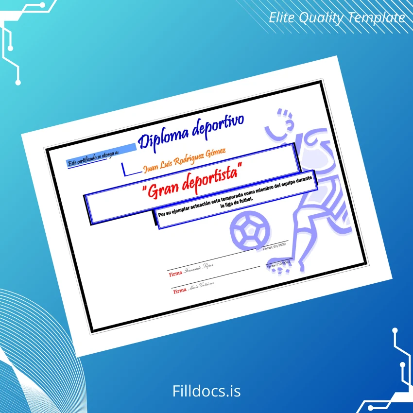 This Spain diploma certificate template solves common challenges such as rapid document replacement for sports awards, enhancing the digital degree presentation with professional styling, and enabling users to customize certificates without specialized software. Ideal for administrators and sports event coordinators, it offers a trustworthy and aesthetically pleasing solution for issuing diplomas promptly and professionally.