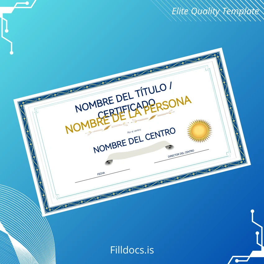 This template is a fully customizable digital diploma download designed specifically for the Spain Educational Center Completion Certificate in Word and PDF formats. It serves as a replacement diploma template that enables educators or administrative personnel to create professional-looking certificates quickly without sacrificing design quality.