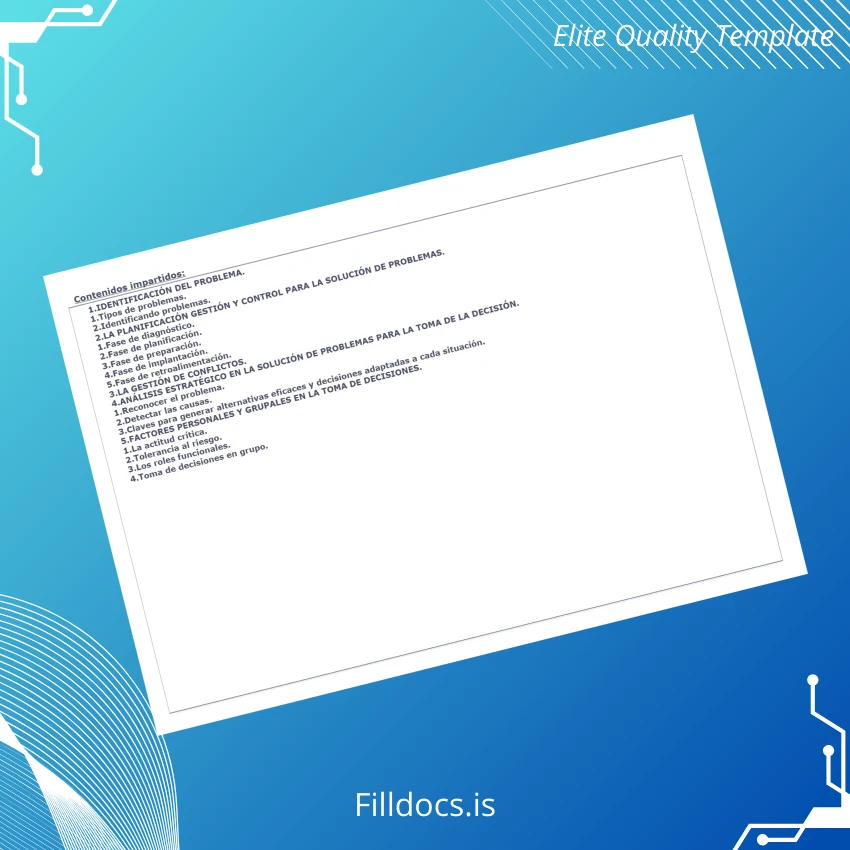 Discover the Spain Empleo para Todos T.P.T. S.L. Diploma in Analysis of Problems and Decision Making Template – Word/PDF, a meticulously designed, fillable diploma certificate template ideal for professionals seeking a customizable and print-ready document. This template offers a perfect blend of aesthetic appeal and functionality tailored to suit your academic and professional certification needs.