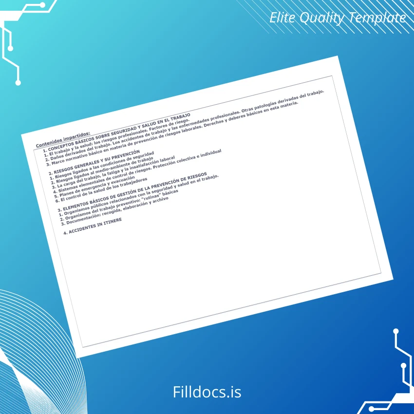 Spain Employment for All S.L. Diploma in Occupational Risk Prevention 50 Hours Certificate Template – High Resolution Word & PDF 4 Page