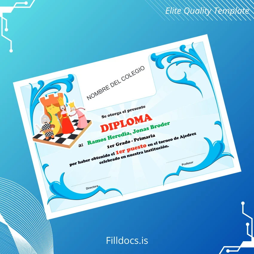 Discover the Spain School Diploma in Chess Template – Word/PDF, a professionally designed digital diploma that offers versatility and convenience for educational institutions and individuals. This fillable diploma form allows easy customization, enabling you to create a personalized certificate that honors chess achievement with elegance and precision.