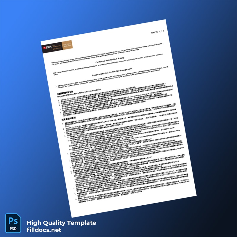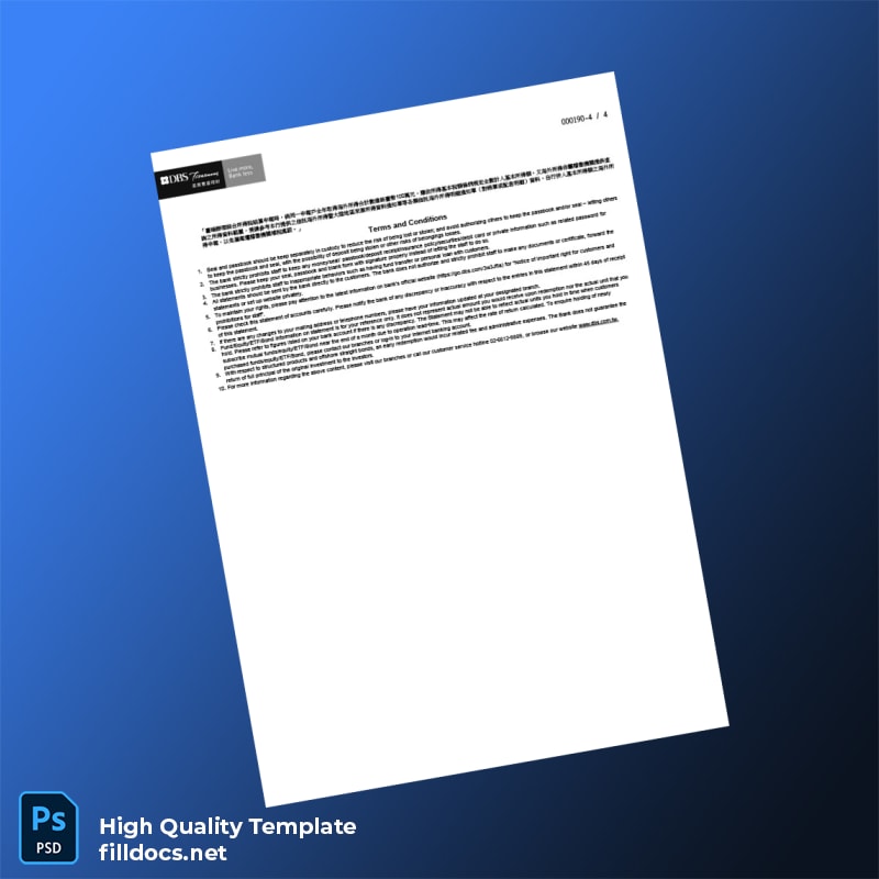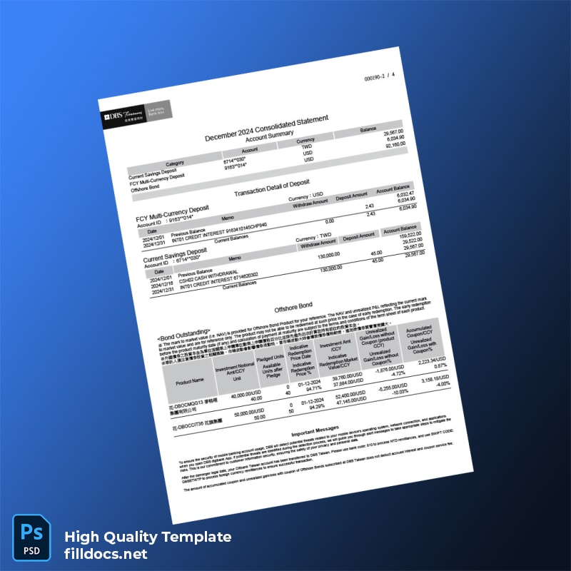 Taiwan DBS Bank Statement Template in Word and PDF Formats