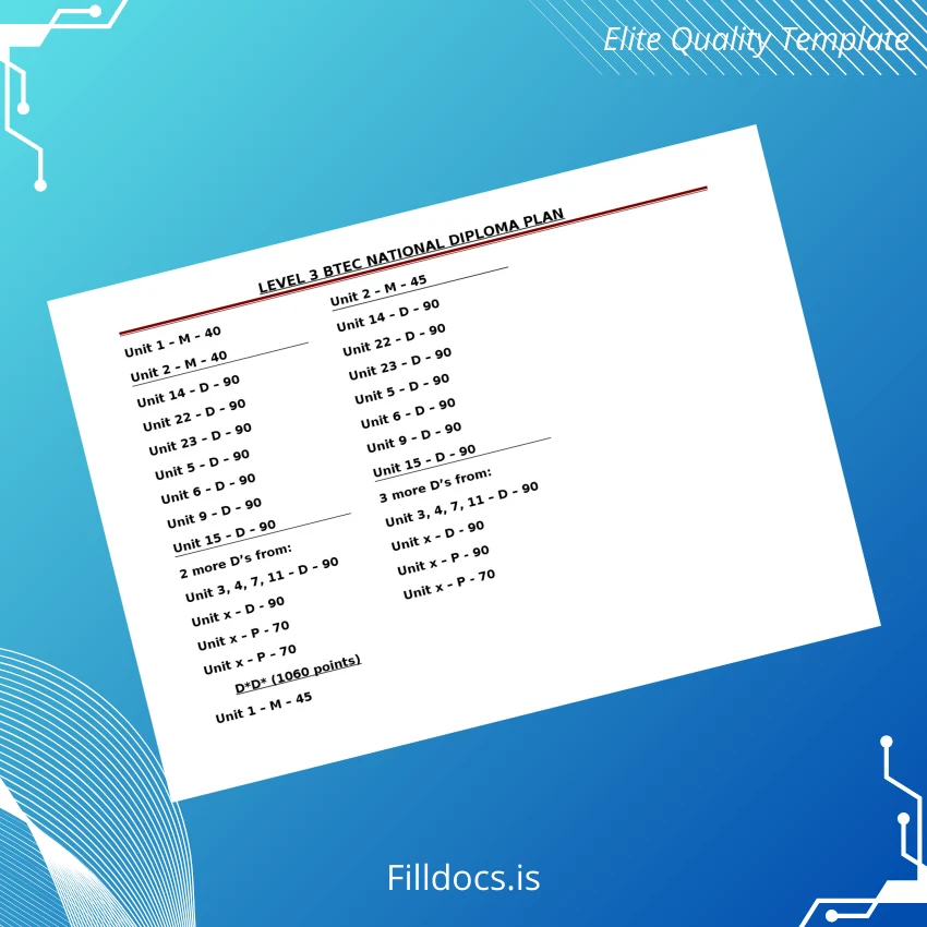 This UK BTEC National Diploma Level 3 Template – Word/PDF is a professionally designed, fillable document ideal for educational institutions and individuals requiring a fast, customizable diploma replacement. Crafted with attention to detail, this editable diploma template offers a practical solution for those needing an authentic-looking certificate that can be personalized with ease.