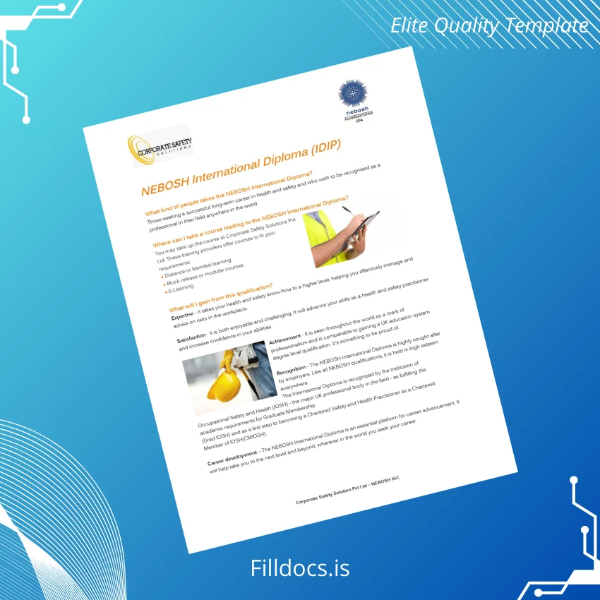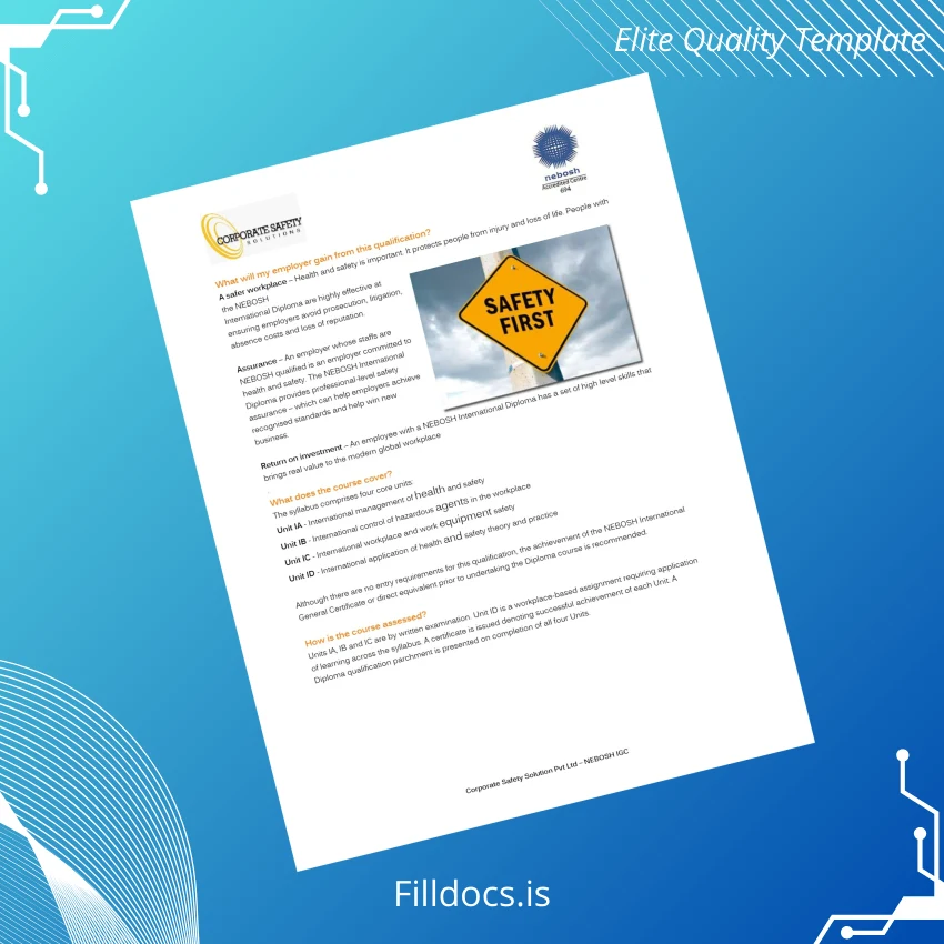 Fillable UK Corporate Safety Solutions Pvt Ltd NEBOSH International Diploma Template – Word/PDF for fast, easy, professional customization and print-ready use.
