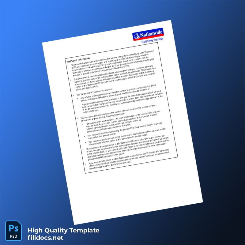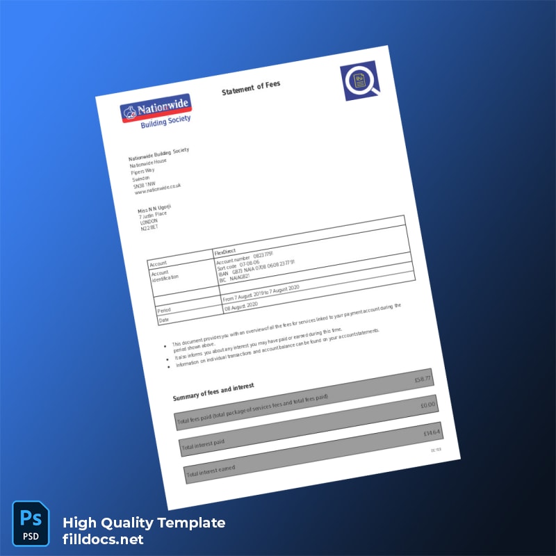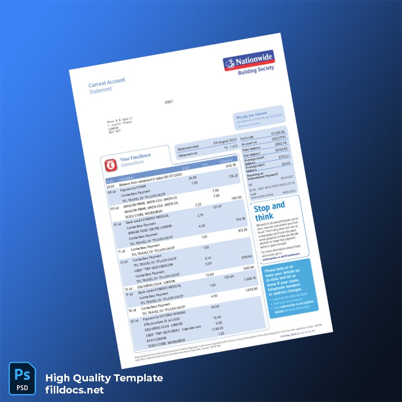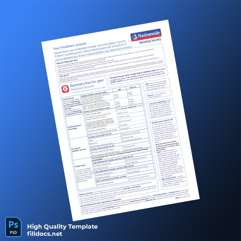 UK Nationwide Bank Statement Template in Word and PDF Formats