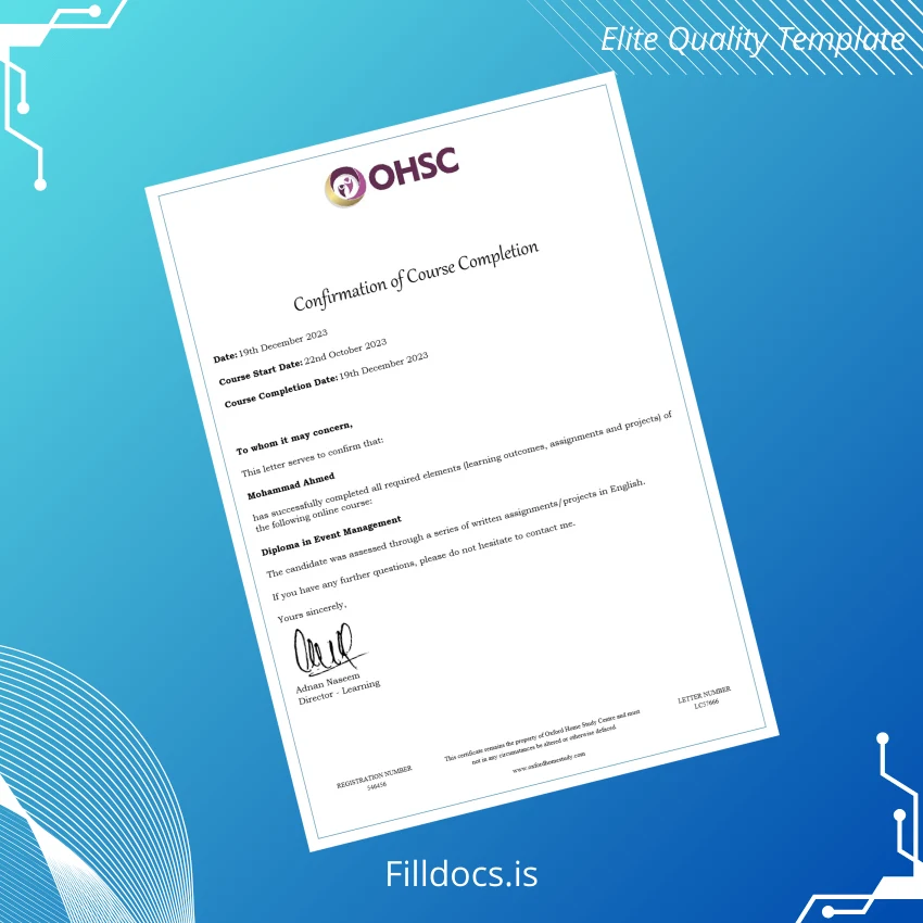 UK Oxford Home Study Centre Diploma in Event Management Template – Word & PDF, Print-Ready High Resolution