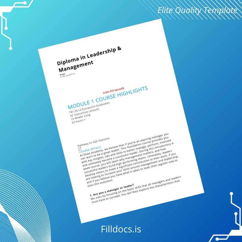 Be the first to review “UK Shaw Academy Diploma in Leadership & Management Template – Word & PDF High Quality Print-Ready 3 Page”