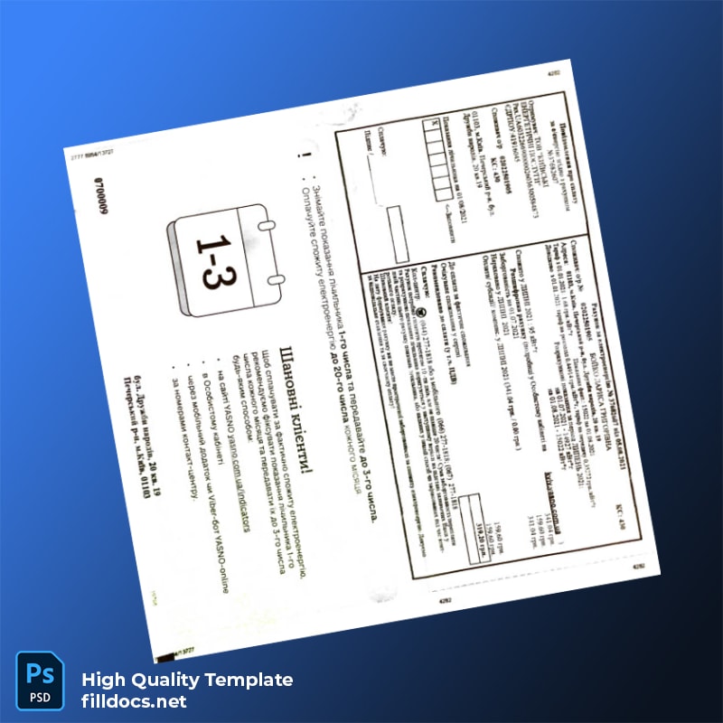 Ukraine YASNO Editable Utility Bill Template in Word and PDF Formats