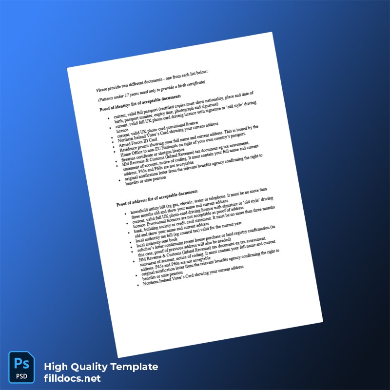United Kingdom HM Revenue Customs Editable Proof Of Identity List Template