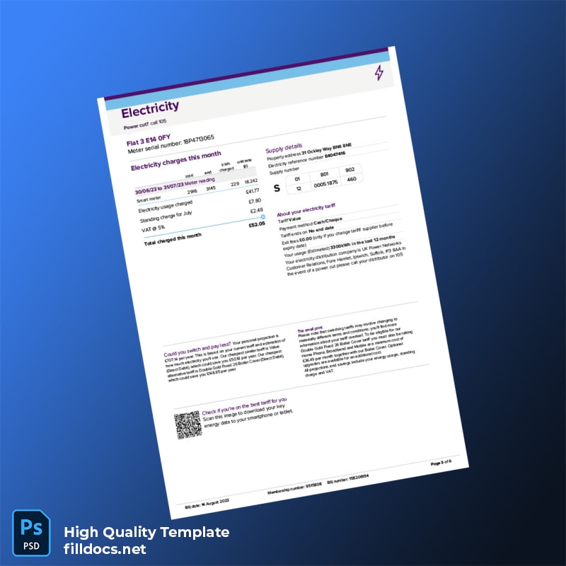 - Designed specifically for UK Utility Warehouse Ltd bills: Maintain authenticity by using a format widely recognized by UK institutions.