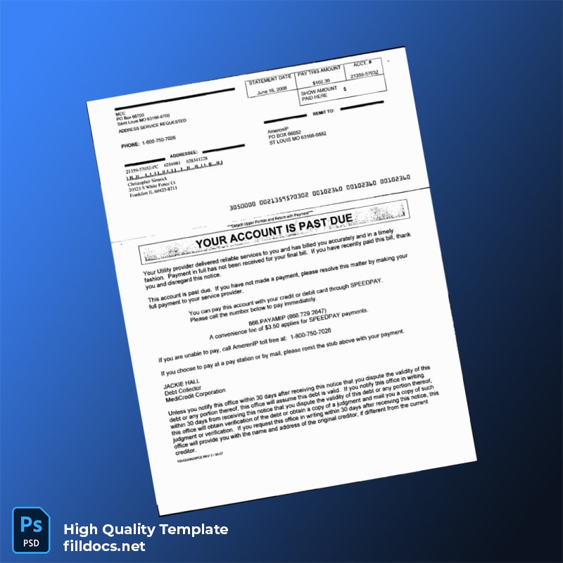 This professionally designed template provides an easy-to-use solution for generating authentic utility bills suitable as proof of address. Available in both Word and PDF formats, the United States AmerenIP Editable Utility Bill Template is ideal for professionals seeking a reliable, customizable, and immediately downloadable utility bill proof of address template.