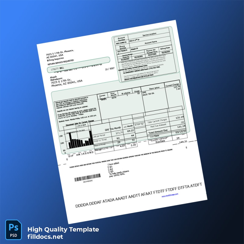 Don’t let missing or expired utility bills slow down your professional processes. Choose the United States City Of Chicago Editable Gas Bill Template for a trusted, editable solution that adapts to your needs. Download this blank utility bill template instantly and join countless professionals who trust it for their proof of address documentation. Browse a wide selection of solutions within the utility bill template category to complete your professional toolkit.