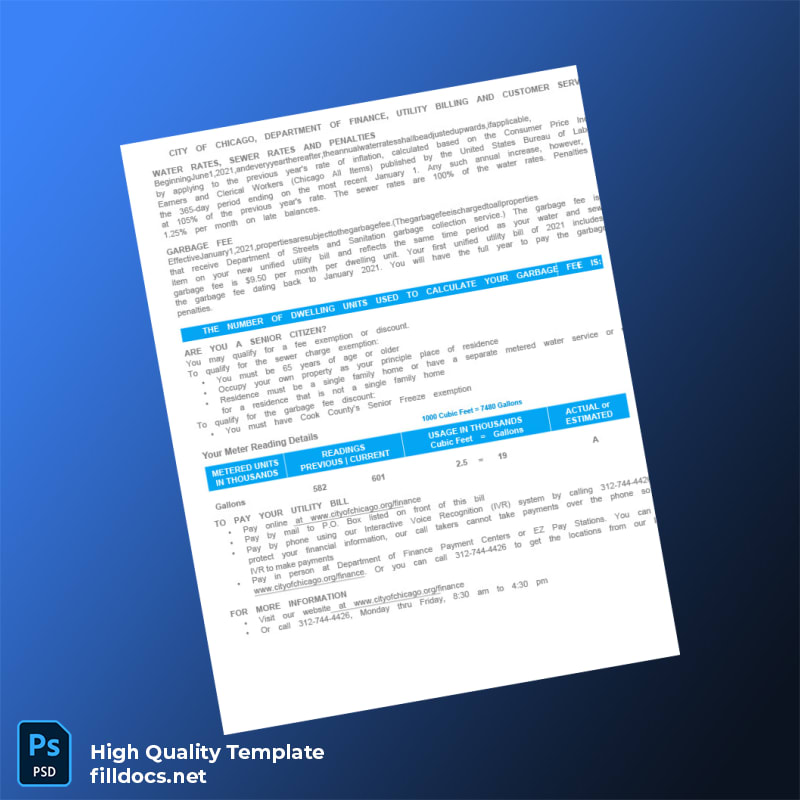 Discover the ultimate solution for generating authentic-looking utility bill documents with the United States City Of Chicago Editable Utility Bill Template, available in both Word and PDF formats. Designed to meet professional verification needs, this utility bill proof of address template offers full customization, rapid access, and user-friendly editing features for your convenience.