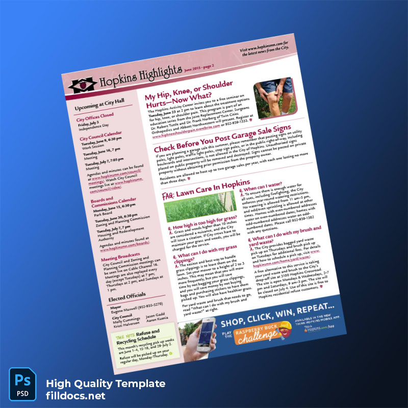 Be the first to review “United States City Of Hopkins Editable Community Newsletter Template in Word and PDF formats 2 page”