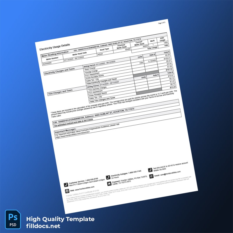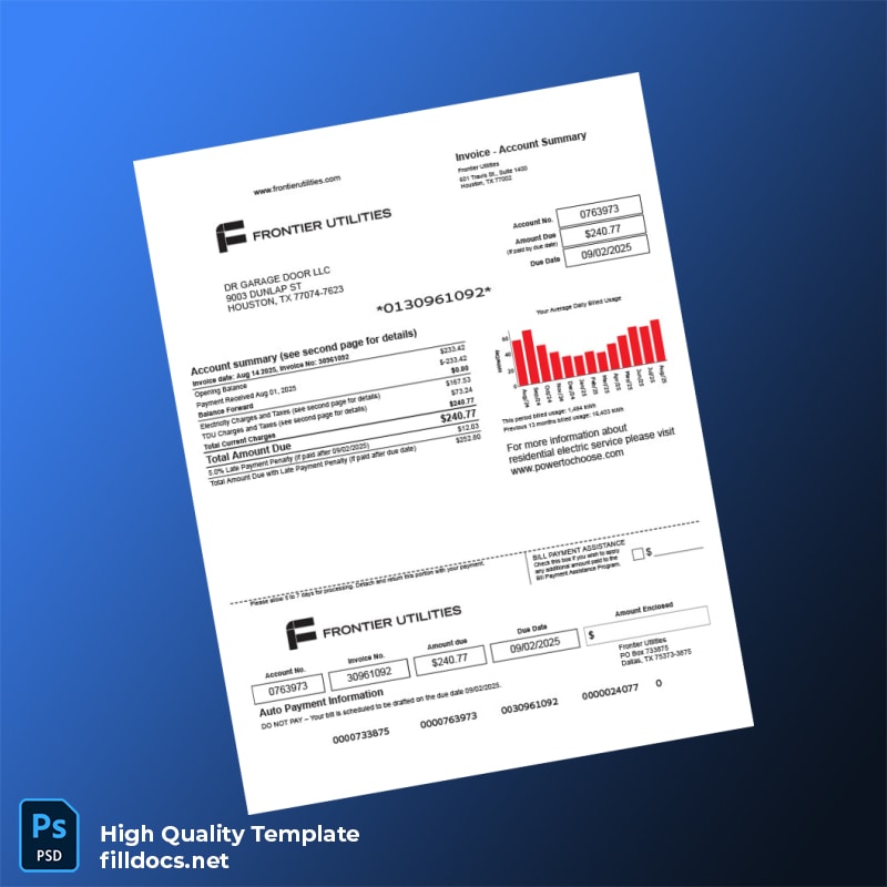 United States Frontier Utilities Editable Utility Bill Template in Word and PDF Formats