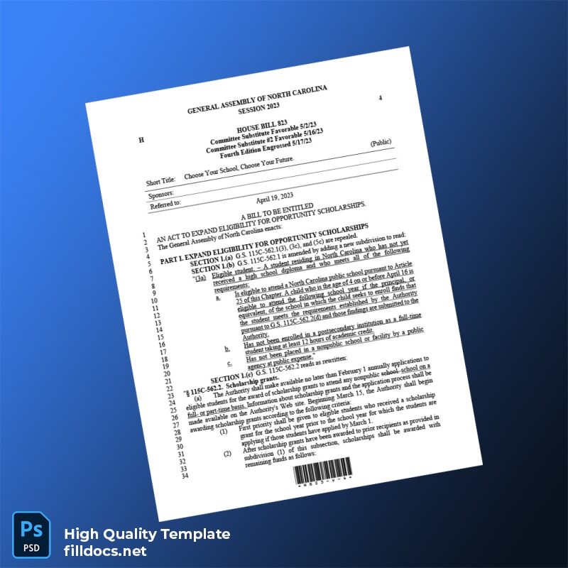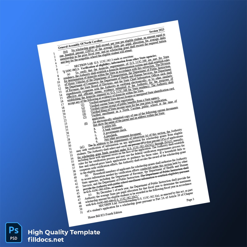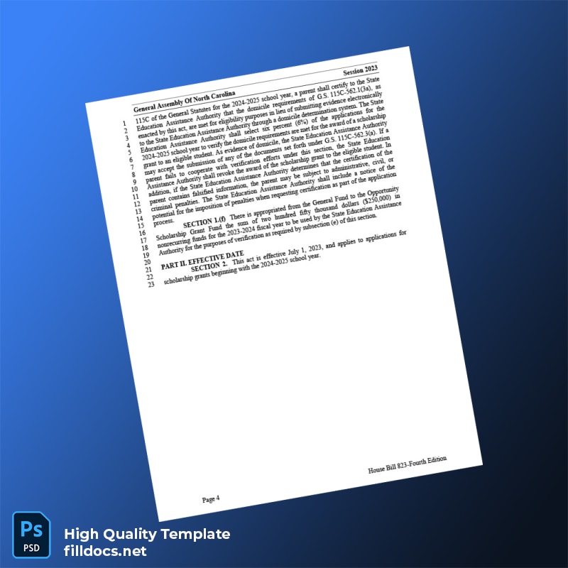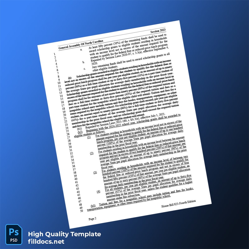 United States General Assembly Of North Carolina Editable House Bill Template in Word and PDF Formats