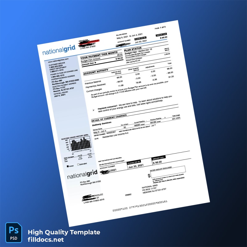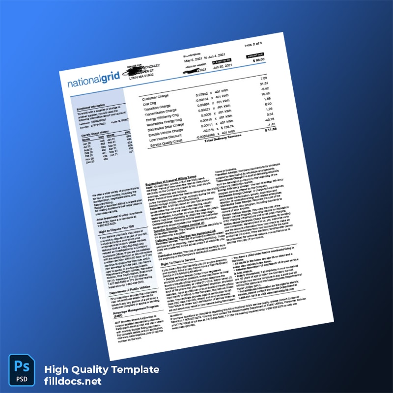 United States National Grid Editable Electricity Bill Template in Word and PDF Formats