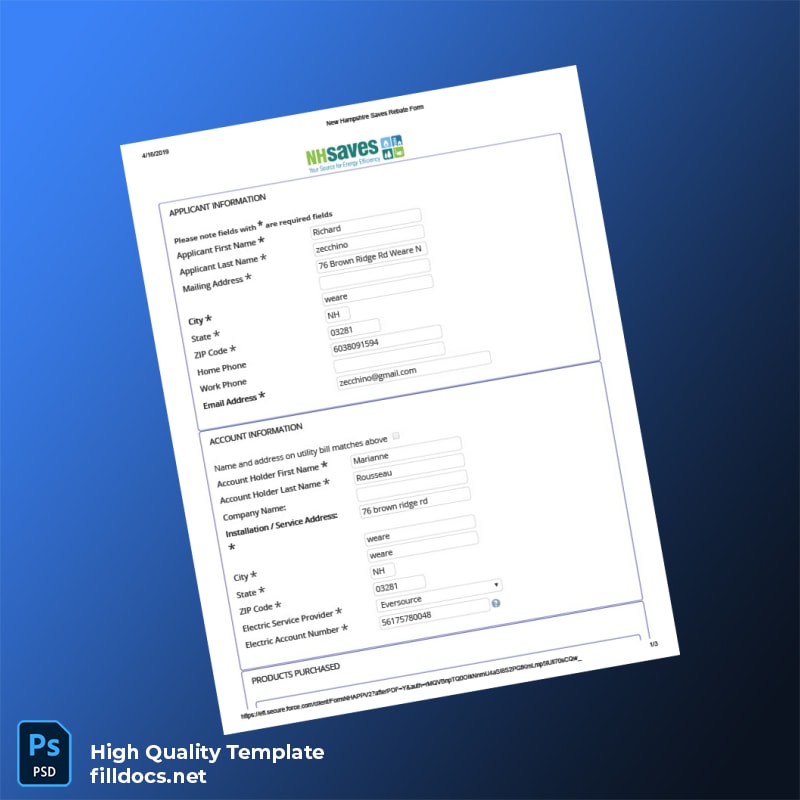 United States NH Saves Energy Federation Inc Editable Rebate Form Template in Word and PDF Formats