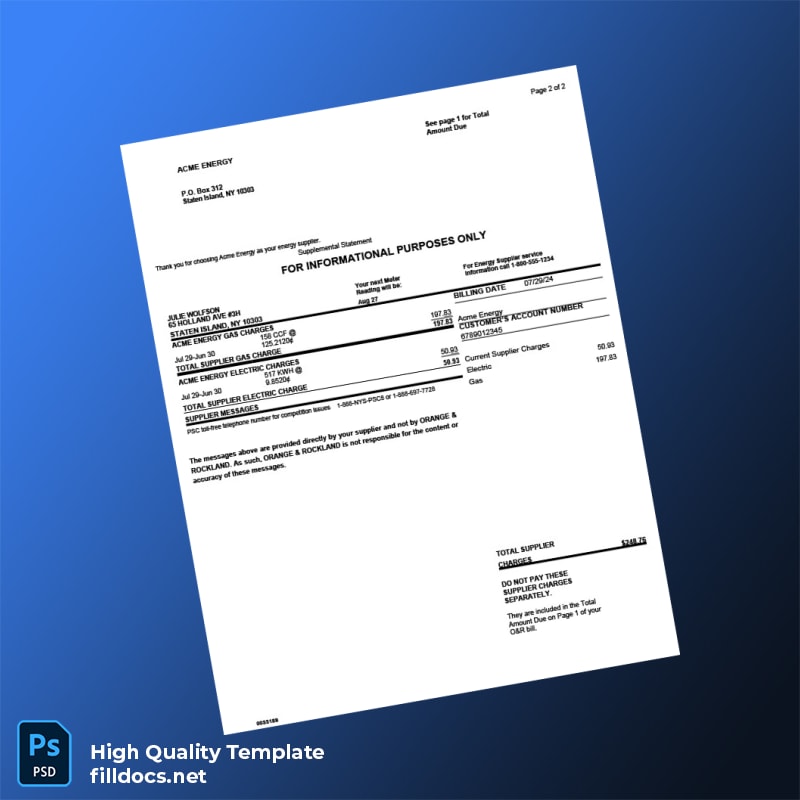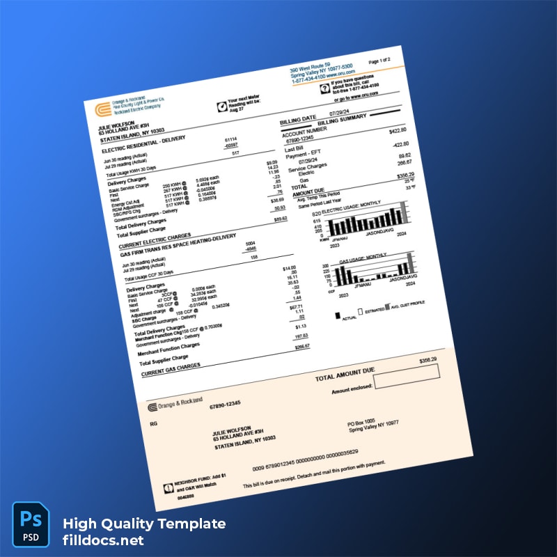 United States Orange Rockland Editable Utility Bill Template in Word and PDF Formats