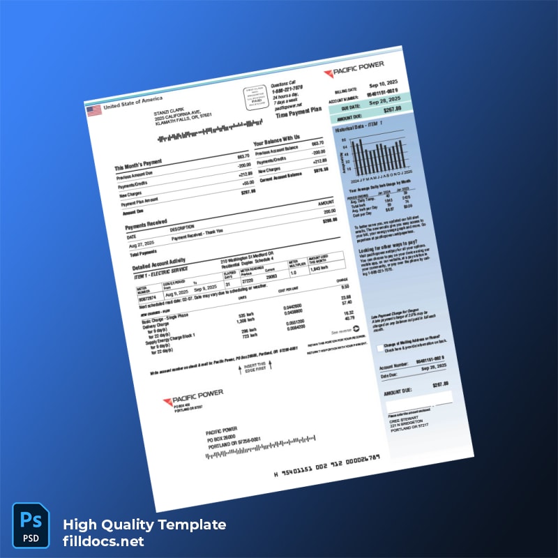 United States Pacific Power Editable Utility Bill Template – Reliable Proof of Address Solution