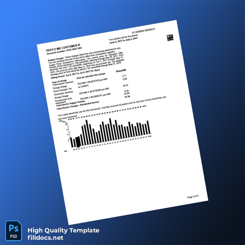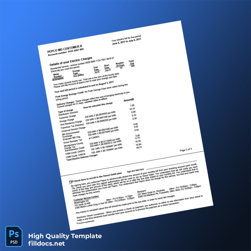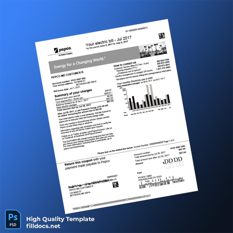United States PEPCO Editable Electricity Bill Template: Your Reliable Utility Bill Solution